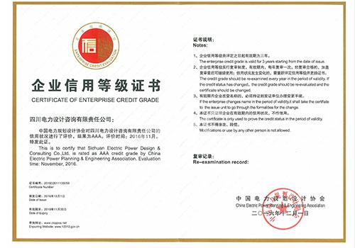企業信用AAA等級證書(電力規劃協會)
